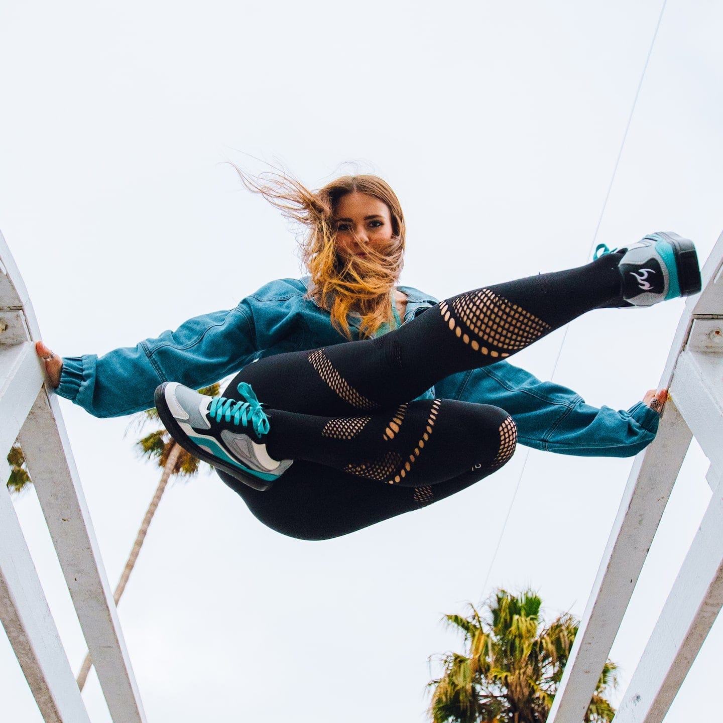 BDASH sneakers are meant to make a statement. Dance in style and be bold with teal, black, white and grey. Curious how to style them? Check out the video below in FuegoTV.