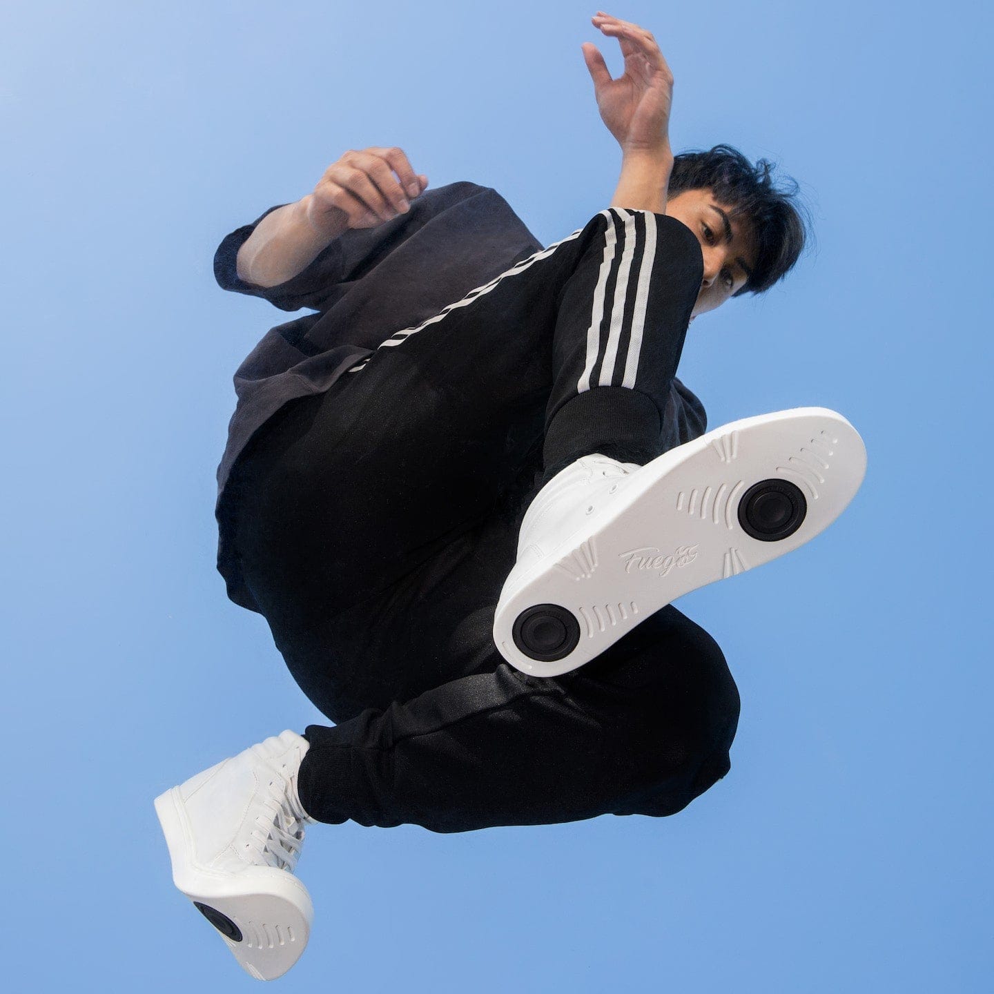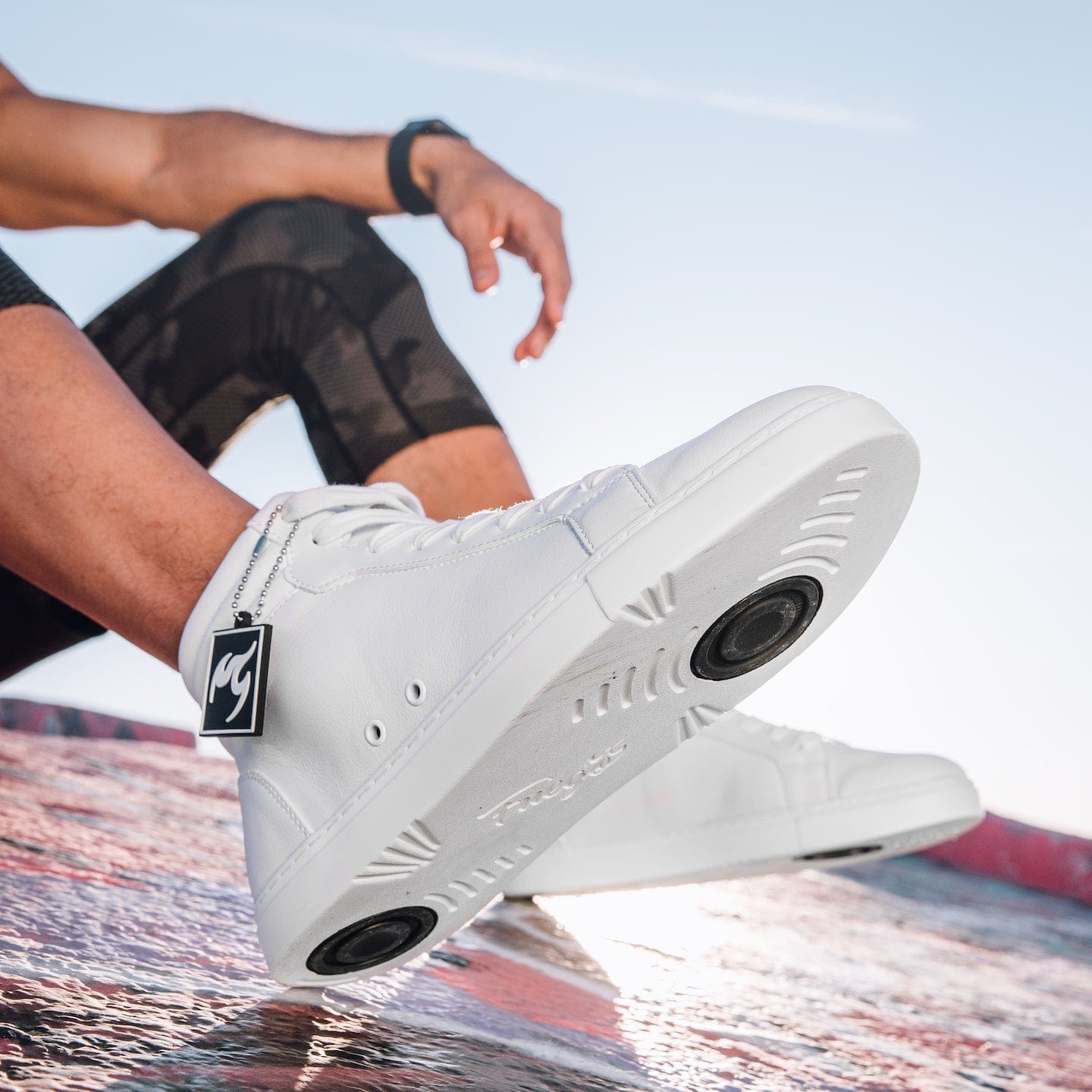 Crisp, cool and clean. Fuego's all-white high-top is a twist on our fan-favorite OG low-top with added freshness & ankle support. It's time to level up your look. Style with anything and dance anywhere.